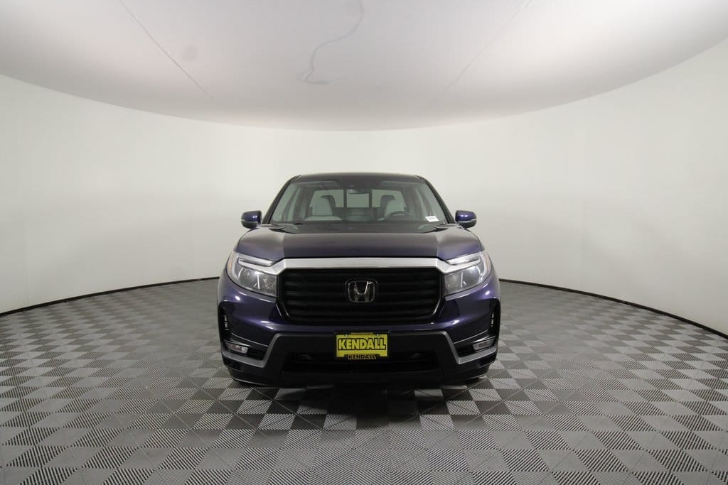 Black Leather, 4-Wheel Disc Brakes, 4.33 Axle Ratio, 7 Speakers, ABS brakes, Air Conditioning, Alloy wheels, AM/FM radio: SiriusXM, Apple CarPlay/Android Auto, Auto-dimming Rear-View mirror, Automatic temperature control, Blind Spot Information (BSI) System warning, Bluetooth® Hands-Free Link, Brake assist, Bumpers: body-color, Delay-off headlights, Driver door bin, Driver vanity mirror, Driver's Seat Mounted Armrest, Dual front impact airbags, Dual front side impact airbags, Electronic Stability Control, Exterior Parking Camera Rear, Four wheel independent suspension, Front anti-roll bar, Front Bucket Seats, Front dual zone A/C, Front fog lights, Front reading lights, Fully automatic headlights, Garage door transmitter: HomeLink, Heated door mirrors, Heated Front Bucket Seats, Heated front seats, Illuminated entry, Leather Seat Trim, Low tire pressure warning, Memory seat, Occupant sensing airbag, Outside temperature display, Overhead airbag, Overhead console, Panic alarm, Passenger door bin, Passenger seat mounted armrest, Passenger vanity mirror, Power door mirrors, Power driver seat, Power moonroof, Power passenger seat, Power steering, Power windows, Radio data system, Radio: 215-Watt Audio System w/7 Speakers, Rear air conditioning, Rear anti-roll bar, Rear reading lights, Rear seat center armrest, Rear step bumper, Rear window defroster, Remote keyless entry, Security system, SiriusXM, Speed control, Speed-sensing steering, Split folding rear seat, Steering wheel mounted audio controls, Tachometer, Telescoping steering wheel, Tilt steering wheel, Traction control, Trip computer, Turn signal indicator mirrors, Variably intermittent wipers, Wheels: 18" Exclusive Pewter Gray Alloy, Black Leather.Blue 2023 Honda Ridgeline RTL AWD 9-Speed Automatic 3.5L V6 SOHC i-VTEC 24VAt Kendall, we sell new cars, used cars, and more! With Kendall Auto Protection, qualified used cars have passed a multi-point safety and mechanical inspection and are covered under our exclus